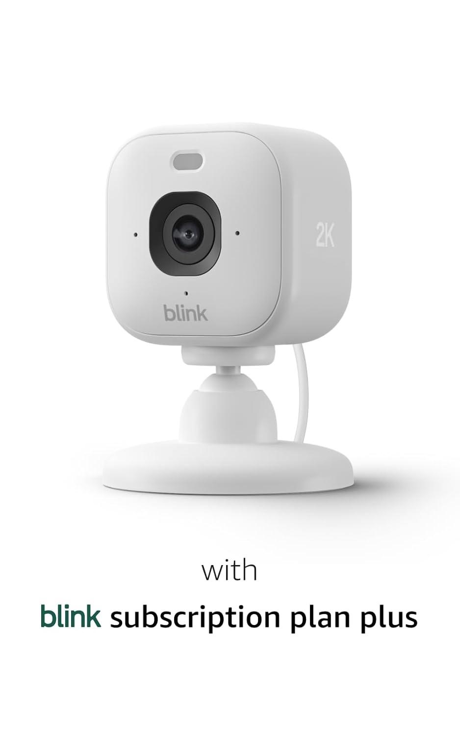 Blink Mini 2K+ (newest model) with 1-Year Subscription – Plug-in Home & Pet Security Camera with 2K video resolution, smart motion detection, works with Alexa – 1 camera (White)(Black)